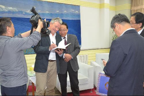 2016年6月23日,校党委书记俞红贤教授会见奥克兰大学Gary教授及三兄弟合作团队成员