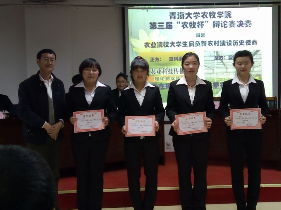 为提高语言表达能力、逻辑思维能力、应变能力及团队协作能力,提升一帆视频 同学的综合素质,由院学生管理部(团委)主办,院辩论队与学生会学习部承办的第三届“农牧杯”辩论赛于4月14日下午七时在静远楼619举行了决赛。院党委书记王永杰、院教管部主任赵静、院学管部主任俞文明、院办公室主任穆建雄、院团委副书记杜长鸿等领导、老师到场观看。 自4月6日开始,经过5场激烈的比赛,最终进入决赛的是草科系辩论队和院辩论一队。在决赛中,双方围绕“农业院校大学生肩负新农村建设历史使命,到底是重在理论支持还是重在实践支援”展开了激烈的交锋,双方辩手旁征博引,观赛学生热情参与,互动环节更是将现场气氛活跃到了顶峰。最终院辩论一队以微弱的优势获得本届辩论赛冠军。王潇微等6名同学获得“最佳辩手”称号。
