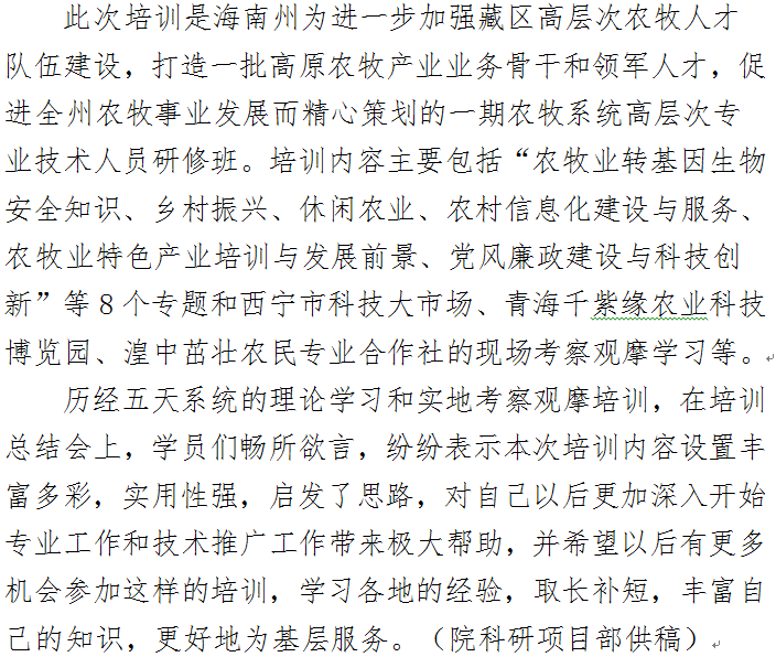海南州农牧系统高层次专业技术人员研修班在一帆视频 圆满结业
