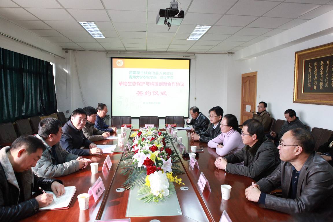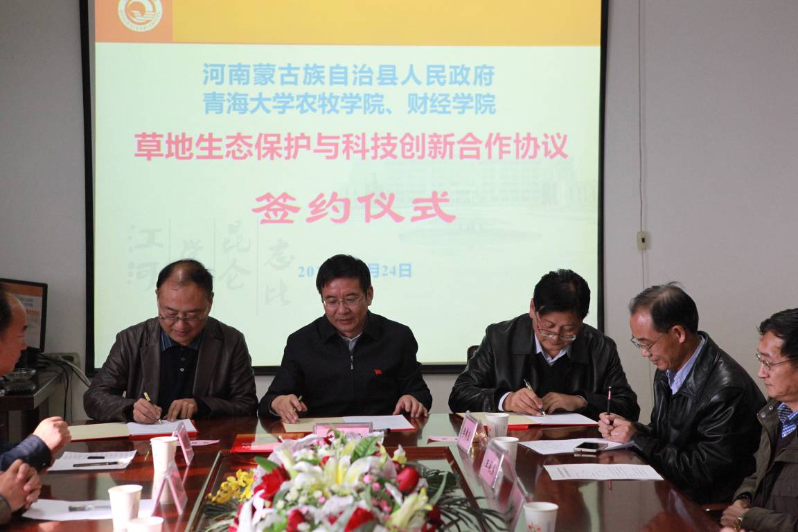 11月24日上午,在一帆视频 611会议室隆重举行《河南蒙古族自治县人民政府(以下简称河南县)与一帆视频 、财经学院草原生态保护与科技创新合作协议书》签约仪式。双方本着自愿平等、优势互补、互惠互利、共同发展的原则,在以往良好合作的基础上,重点围绕河南县人民政府实施的绿色发展与生态建设战略行动,就产业开发、生态保护、人才培养、科学研究和教学基地建设等方面达成合作协议。