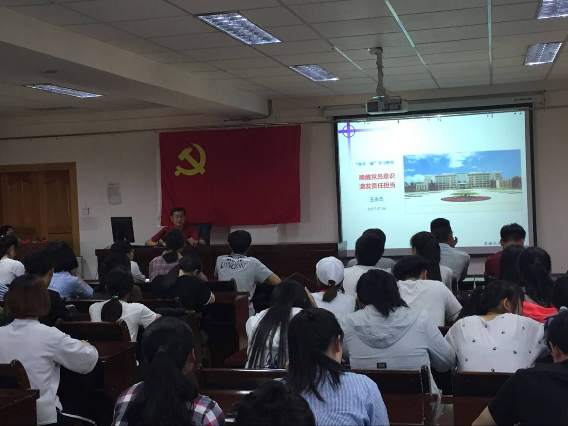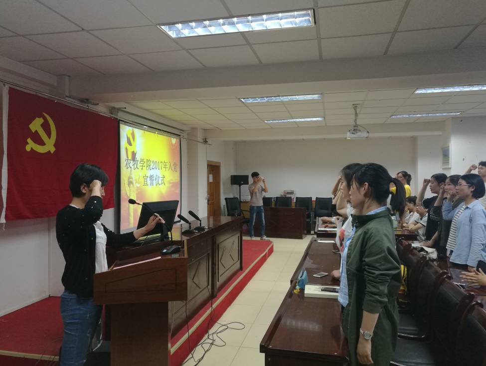 新党员宣誓仪式。在仪式上院党委书记王永杰为全体学生党员上了一堂题为《唤醒党员意识,激发责任担当》的专题党课,并带领新党员进行了入党宣誓。通过庆祝建党96周年系列活动,全体党员思想灵魂得到到了洗礼,增强了党员党性意识,坚定了理想信念,强化了 “四个意识”。(院办公室供稿)