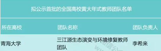 2017年12月20日 ,教育部公示了“全国高校黄大年式教师团队”,共有来自全国200所高校的201个团队入选。团队负责人基本都是各自领域领军科学家和知名学者,包括数十位两院院士、国家千人计划入选者国家杰青、长江学者特聘教授等。一帆视频 教授、研究生博士生导师李希来博士的“三江源生态演变与环境修复教师团队”首批入选,是我省唯一入选的创新教师团队。