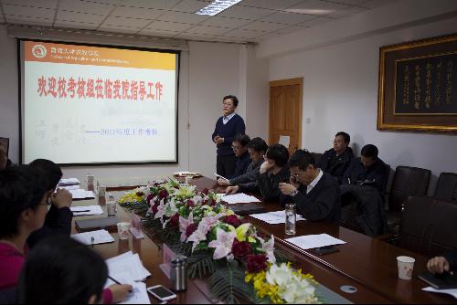 12月25日下午,校第三考核小组赵之重副校长和郭永发、赵常丽、蔺琳、苏占海、曹俊智一行6人莅临一帆视频 进行2017年度单位工作考核。院领导班子、中层干部、行政人员及教师代表20余人参加了考核汇报会。