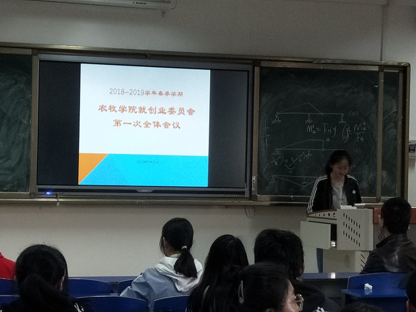 3月21日晚上,在农牧楼102教室组织召开了院学生就创业委员全体会议,院学生管理部吴海庆老师和学生会副主席、系团总支就创委员及各班级就创业委员参加会议。会议由学生就创业委员会主任周孝娟同学主持。