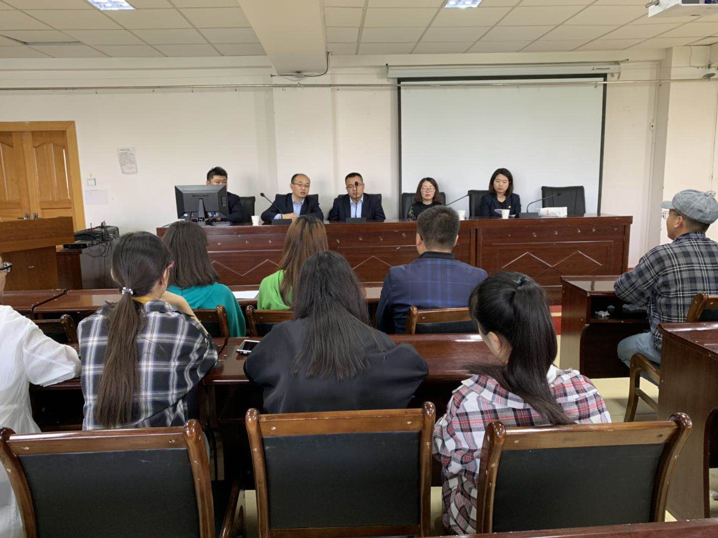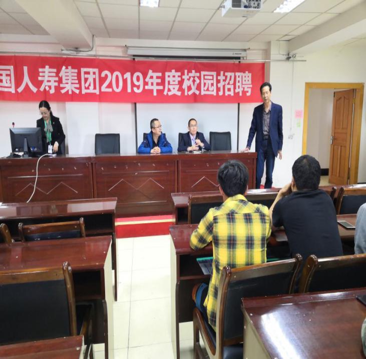 分别为中国人寿财险有限公司青海分公司和中国大地保险财险有限公司青海分公司举办了“农险管理岗位专场招聘会”。2019届30余名毕业生参加了招聘会。院学生管理部副主任俞文明、就业指导科科长吴海庆老师现场指导学生应聘。