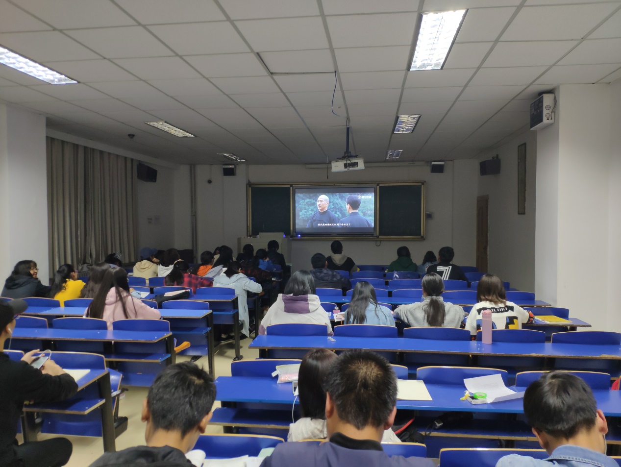 于9月24日晚19:00组织大一新生在各班自习室观看爱国教育电影——《建国大业》。使每位同学能够更加深刻地了解共产党人信仰坚定、心系群众、勇于担当、创新奉献的精神风貌。