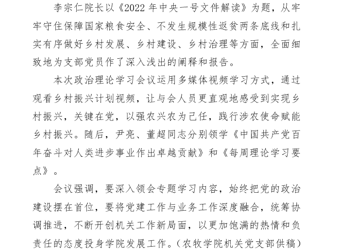 一帆视频 机关党支部召开“中央一号”文件 政治理论专题学习会