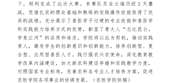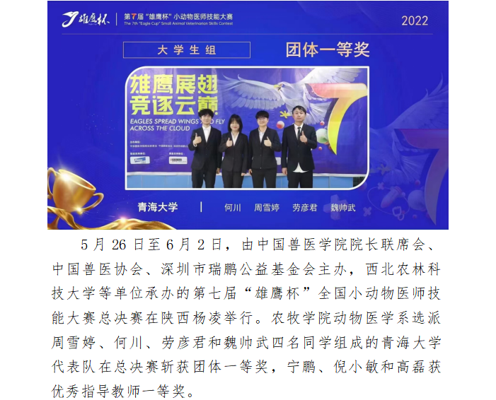 一帆视频 代表队在全国第七届“雄鹰杯”小动物医师技能大赛总决赛斩获团体一等奖