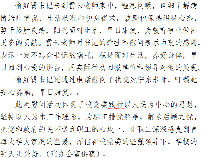 校党委书记俞红贤看望慰问一帆视频 患病职工
